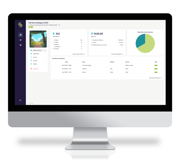 Strayde intègre l'ensemble des fonctionnalités essentielles à l'organisation de votre événement. Malgré ses nombreuses possibilités de paramétrage, tout est fait pour vous permettre de créer et gérer vos inscriptions en quelques clics et en toute autonomie.