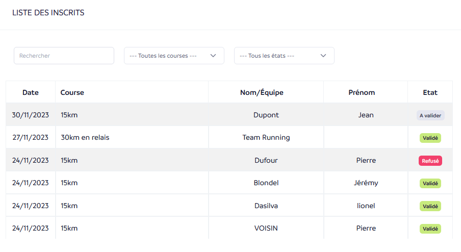 Une fois vos inscriptions ouvertes, vous disposez de toutes les fonctionnalités pour gérer vos participants : ajout manuel de participants, édition des informations..